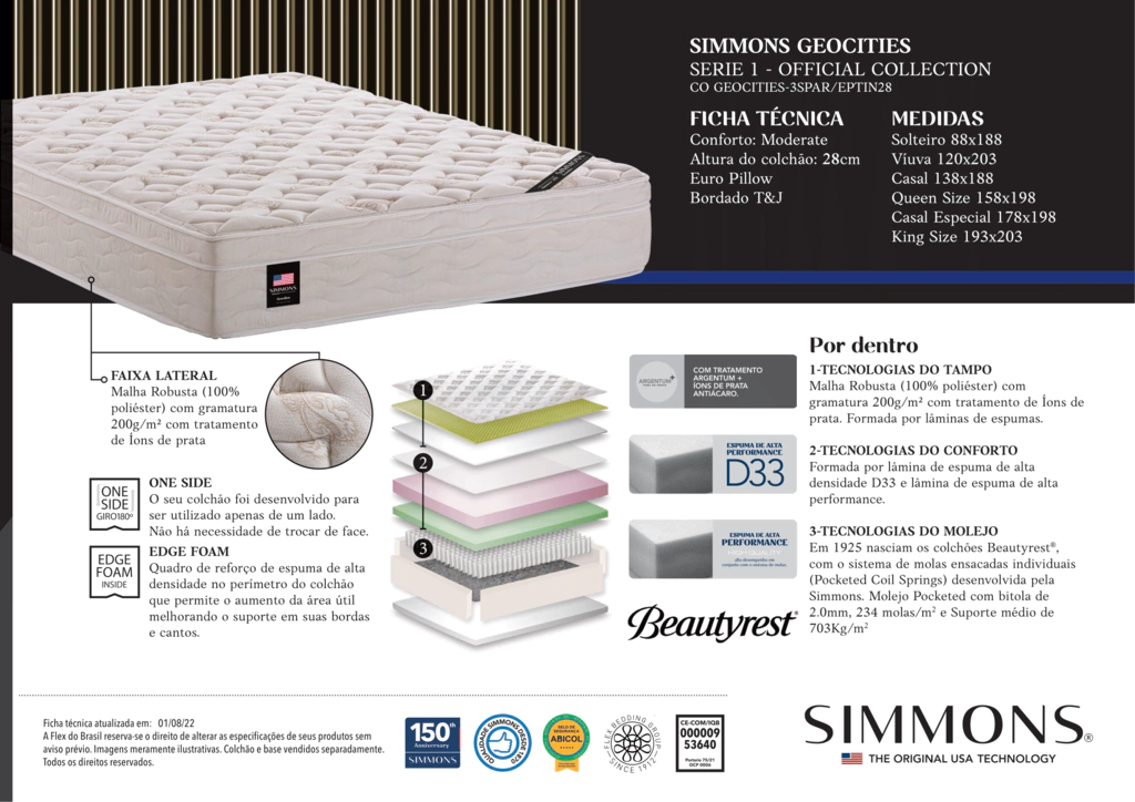 Presente em mais de 100 países, a Simmons é uma marca tradicionalmente reconhecida pela sua qualidade e tecnologia, atuando por mais de um século no mercado.