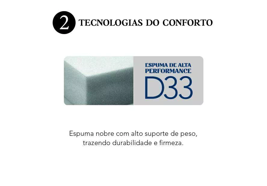 - Espuma de alta performance: Espuma de alta performance que garante o suporte ideal em conjunto com o sistema de molas.