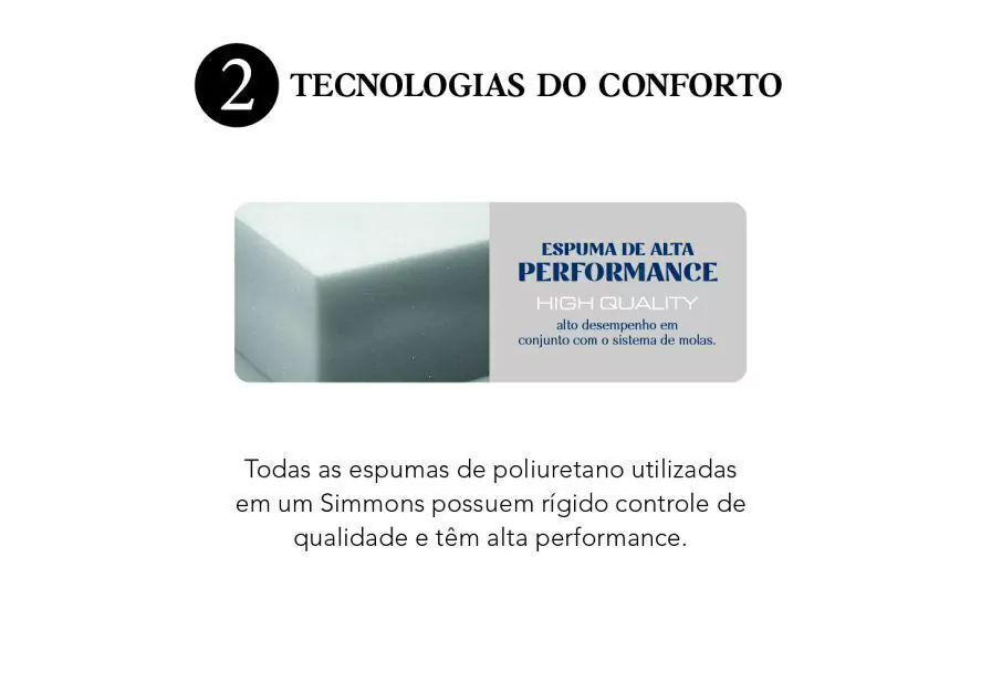 - Espuma de alta performance: Espuma de alta performance que garante o suporte ideal em conjunto com o sistema de molas.